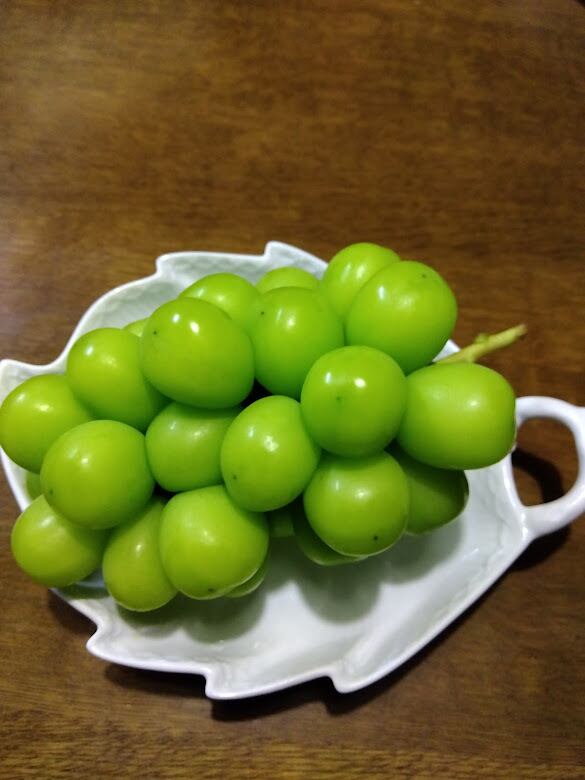 長野県飯田市に近い牛牧という町で坂道を登って登って行った所で、老夫婦が丹精込めて栽培しているシャインマスカットの収穫が始まりました。